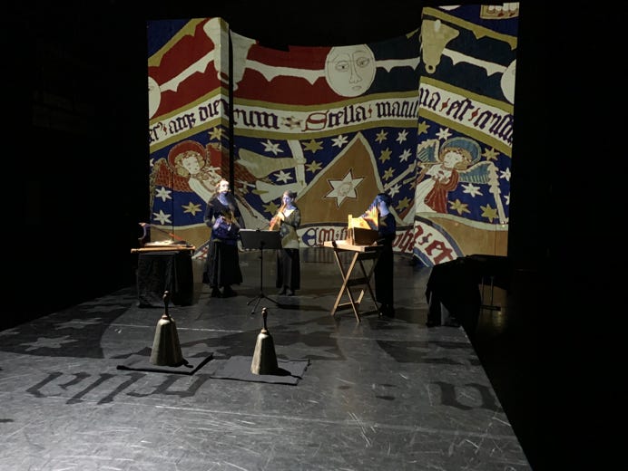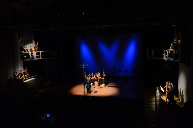 Eine Performance mit historischen Instrumenten, Physical Theatre und Video